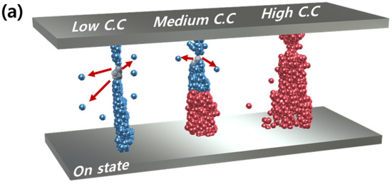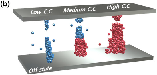 - Huang, C.H.; Huang, J.S.; Lai, C.C.; Huang, H.W.; Lin, S.J.; Chueh, Y.L. Manipulated transformation of filamentary and homogeneous resistive switching on ZnO thin film memristor with controllable multistate. ACS Appl. Mater. Interfaces 2013, 5, 6017–6023. [Google Scholar] [CrossRef] [PubMed]