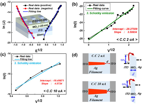 - Zazpe, R.; Stoliar, P.; Golmar, F.; Llopis, R.; Casanova, F.; Hueso, L. Resistive switching in rectifying interfaces of metal-semiconductor-metal structures. Appl. Phys. Lett. 2013, 103, 073114. [Google Scholar] [CrossRef]