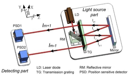 - Kim, J.-A.; Kim, K.-C.; Bae, E.W.; Kim, S.; Kwak, Y.K. Six-degree-of-freedom displacement measurement system using a diffraction grating. Rev. Sci. Instrum. 2000, 71, 3214–3219. [Google Scholar] [CrossRef]