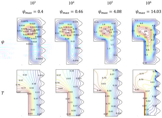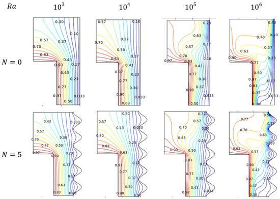 4.1.2. Thermal Trends for Rayleigh Number ()