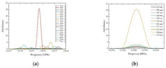 - Song, Y.-H.; Lu, R.; Gong, S. Analysis and Removal of Spurious Response in SH0 Lithium Niobate MEMS Resonators. IEEE Trans. Electron Devices 2016, 63, 2066–2073. [Google Scholar] [CrossRef]