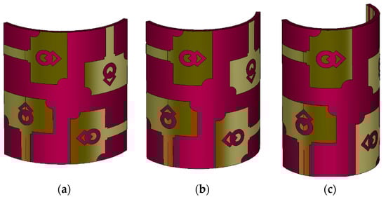 Bending analysis of the prototype antenna (a) BR = 25 mm, (b) BR = 20 mm, (c) BR = 15 mm.