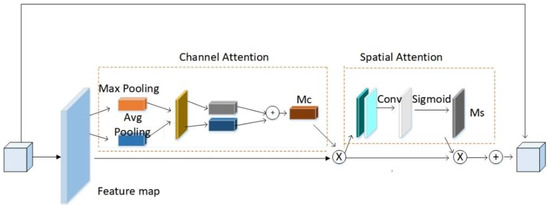 CBAM applies attention to both channel and spatial dimensions, as shown in Figure 2. CBAM, like the SE module, can be embedded in most current mainstream networks. It can improve the feature extraction ability of the network model without significantly increasing the number of calculations and parameters.