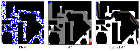 Figure 9, and so they would have taken more time than the stochastic methodologies. The A* or the hybrid A* algorithm shows the straight and shortest planned path in