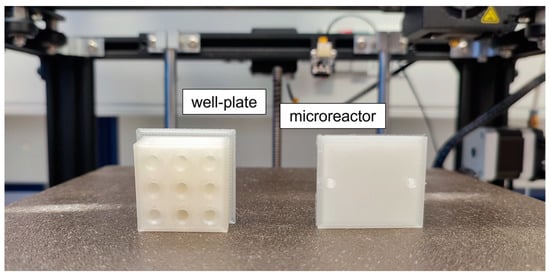 3D-printed models made of natural polylactic acid (PLA). The well plate can be designed with a customized number of wells depending on the experimental needs, while the microreactor bares a serpentine-like internal shape in order to hold more volume in a smaller space. The models are ready-to-use after printing (no post-printing treatment needed).