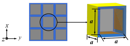 Figure 1. It consists of a periodic square cavity array composed of a metal base plate and a multi-layer FSS cross-arranged. The depth of the square cavity unit is represented as