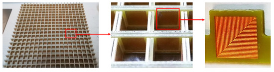Figure 12. The FSS on the inner wall of the square cavity is made by a printed circuit board. The ITO layer outside the square cavity is a dense ITO film formed on the PET substrate by magnetron sputtering under high vacuum conditions. The ITO-PET layer and the PR layer are tightly bonded together by hot pressing technology.
