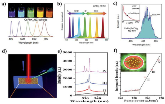- Chen, J.; Du, W.; Shi, J.; Li, M.; Wang, Y.; Zhang, Q.; Liu, X. Perovskite Quantum Dot Lasers. InfoMat 2020, 2, 170–183. [Google Scholar] [CrossRef]