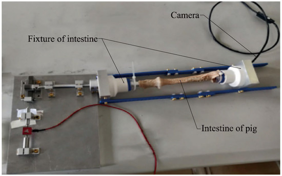 Figure 6 shows the system of the biopsy experiment, which is simplified based on the measuring system. The data acquisition device and the gear and rack mechanism are removed. The fixture of the intestine is equipped, which is used to fix the intestine for biopsy.