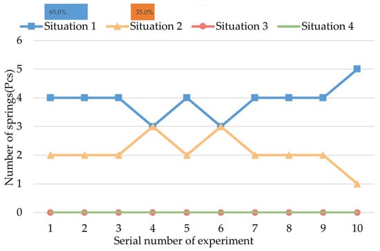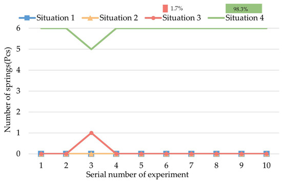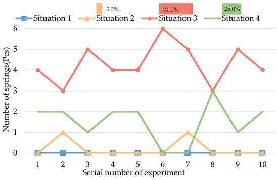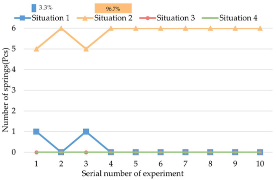 We carry out four groups of experiments, as described in this section. The steps of the experiments are shown in Table 2. The biopsy effect of each action is evaluated by the proportions of the above four situations (as shown in Figure 9) among six springs.