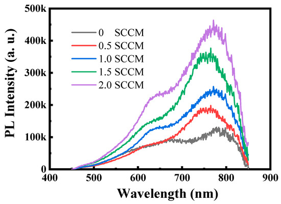 PL spectra of thin films prepared at different NH3 flow rates under an excitation wavelength of 325 nm.