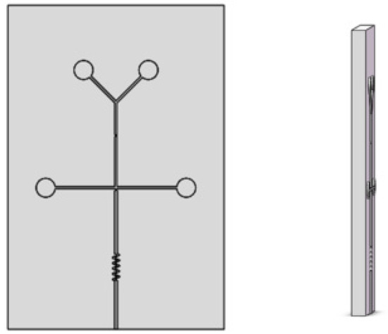 Cut the two strips of PDMS into a 60 mm × 40 mm rectangle, and then punch holes in the corresponding position of the cover sheet PDMS with a diameter of 1.5 mm, as shown in Figure 6.