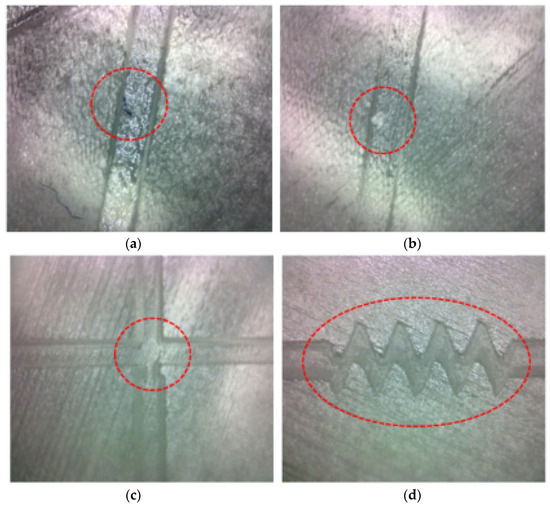 (a,b) There are obvious surface impurities problems. (c,d) It can be seen that the forming at the shrinkage part meets the design requirements.