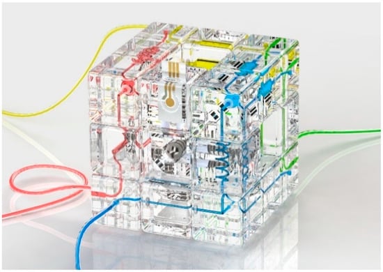 - Lai, X.; Shi, Z.; Pu, Z.; Zhang, P.; Zhang, X.; Yu, H.; Li, D. A Rubik’s microfluidic cube. Microsyst. Nanoeng. 2020, 6, 27. [Google Scholar] [CrossRef]