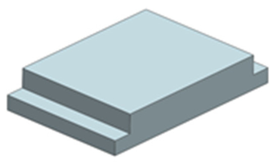 The workpiece and cathode materials are both SUS304 stainless steel. The workpiece is 25 mm long, 20 mm wide, and 5 mm high. The three-dimensional model is shown in Figure 8. The wedge-shaped tooth sidewalls are electrophoretically plated with a 30-μm-thick insulating layer to prevent stray corrosion on the sidewall. The front face of the front guide block in the cathode tool assembly is inclined at an angle to the fixture flow channel to guide the electrolyte into the processing area. In addition, the guide block increases the electrolyte flow velocity and enhances its ability to wash away the ECM products.
