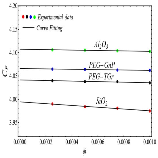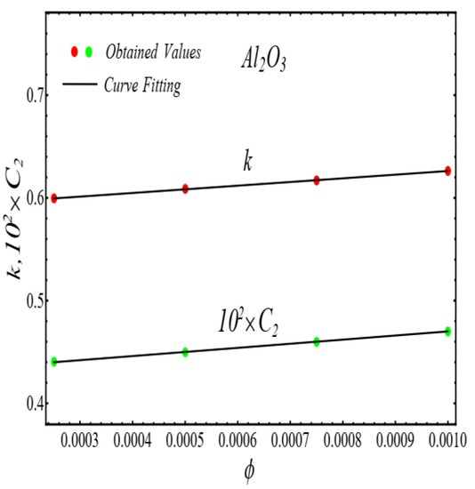 Figure 17. Fitting the Equation (5) for experimental data of schematic nanofluids.