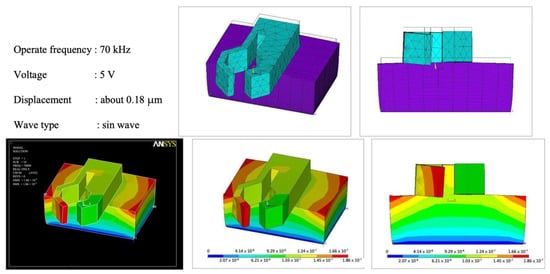 After completing the simulation, the impedance analysis measurement and the displacement amplitude measurement using the laser interferometer, the simulation and actual measurement of the simple piezoelectric stator and the multi-layer piezoelectric stator were compared and the results are summarized in Table 1 and Table 2. There were several important results found that are worth discussing: