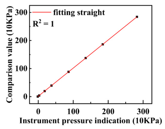 Specifically, the instrument was placed in a pressure-resistant chamber, and the pressure sensor was leveled with the water surface. Further, the PT1000 was placed on the water surface and exposed to the gas in the pressure-resistant chamber. Furthermore, the calibration of the eight pressure points of the experimental instrument was completed by performing the stepwise pressurization and stepwise decompression of the pressure chamber seven times.