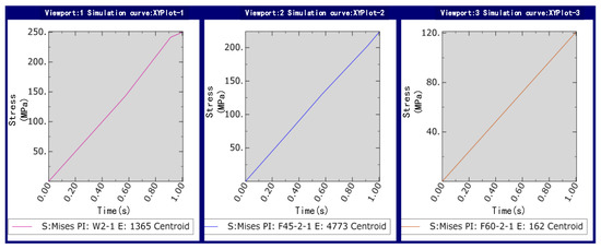 Sampling and simulation experiments are carried out at the maximum stress of deposited copper in Figure 13. The simulated load force is applied in the vertical direction, and the load force calculation formula is used as the load force to the lower end of the microcopper wire in the model; the stress change curve of the metal copper deposited during manipulation was obtained as shown in Figure 14.