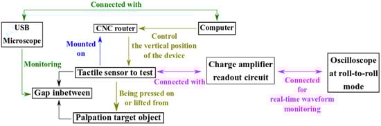 Schematic of the hardware setup to test the fabricated tactile sensor.