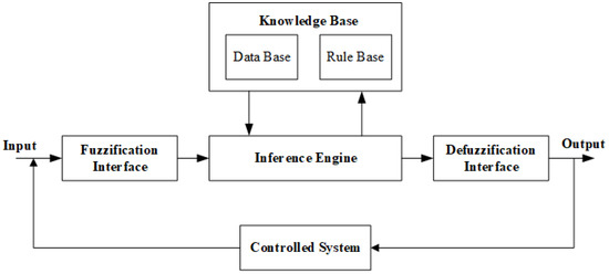 Fuzzifier, knowledge base, fuzzy rule base, and defuzzifier are the main components in the structure of a fuzzy controller for any controlled system, as shown in Figure 5.