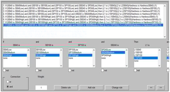 A fuzzy system uses rules based on the If-Then rule for assigning relationships between fuzzy system inputs and outputs. The rules that are used in the geometry-hardness cladded layer fuzzy logic control system are shown in Figure 12.