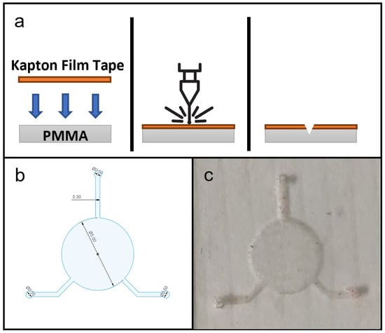 - Gao, K.; Liu, J.; Fan, Y.; Zhang, Y. Ultra-Low-Cost Fabrication of Polymer-Based Microfluidic Devices with Diode Laser Ablation. Biomed. Microdevices 2019, 21, 83. [Google Scholar] [CrossRef]
