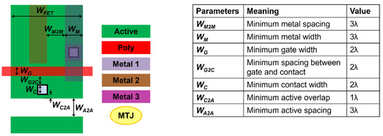 - Seo, Y.; Kwon, K.-W. Area-optimized design of SOT-MRAM. IEICE Electron. Express 2020, 17, 20200314. [Google Scholar] [CrossRef]