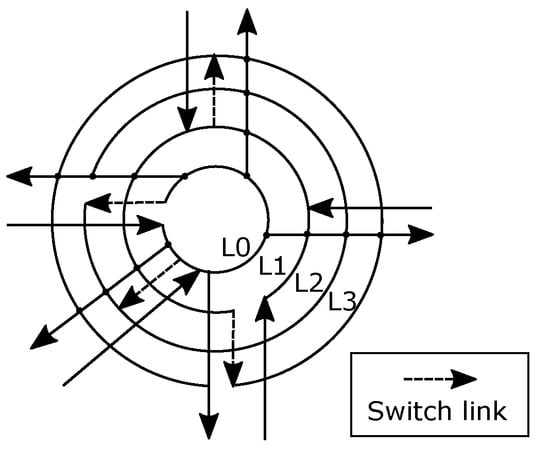 - Abad, P.; Puente, V.; Gregorio, J.A.; Prieto, P. Rotary Router: An Efficient Architecture for CMP Interconnection Networks. SIGARCH Comput. Archit. News 2007, 35, 116–125. [Google Scholar] [CrossRef]