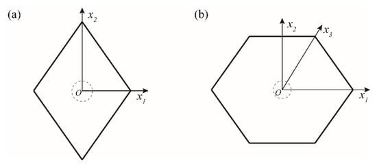 A single rigid spherical particle was set at the fixed location on the cross-sectional area for both rhombic and hexagonal microchannels (see Figure 2). A net lift force that acts on the particle was computed to explore an inertial focusing phenomenon in the present channels primarily along the line of symmetry. In particular, the two lines of symmetry were considered on a cross-plane of the rhombus such as x1 and x2, representing a horizontal and vertical axis in the Cartesian coordinate system, whereas the hexagonal case has an additional line of symmetry (x3) corresponding to the axis from the origin to the corner bisector for an obtuse angle of the hexagon. Thus, multiple locations along the line of symmetry provide a variation in a net lift force acting on the particle with respect to the channel center.