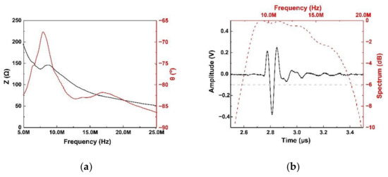 (a) Electrical magnitude (black) and phase angle (red), (b) pulse-echo wave (black) and frequency spectrum (red) performances of acoustic tweezers by textured KNN-based ceramics.