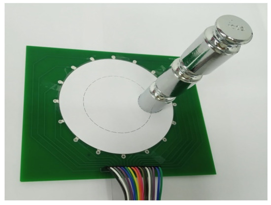 Figure 15 showed a 100 g weight on the sensor. In this test, the weight is placed on 16 points evenly distributed along a circle with a radius of 30 mm.