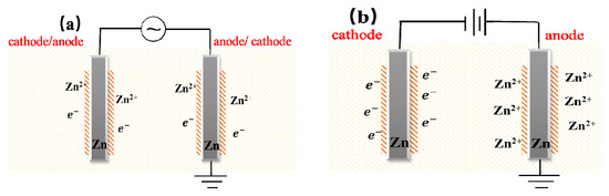 In the first step, as the positive and negative poles of the AC power supply are constantly changing, Zn in the same place can be used as cathode or anode.