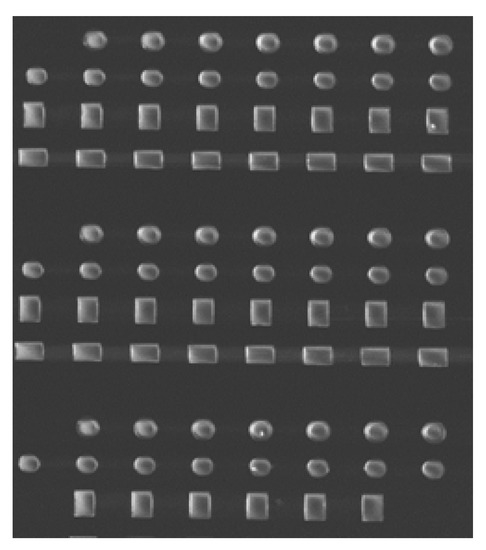 SEM image of 300 nm thick Py nanostructures. The size deviation is lower than 5%.