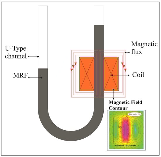 A schematic U-type channel and magnetic coil used for testing.