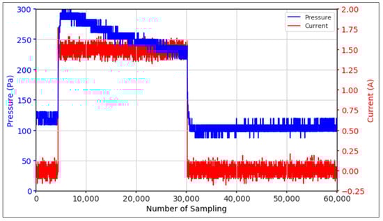 In the following observation stage, a 1.5 A current was used with higher frequencies, namely 20 Hz, 40 Hz, 50 Hz, and 100 Hz. The results are shown in Table 2. Although these observations were intentionally carried out using a 1.5 A current, it was expected that the pressure change phenomenon would be more visible with a larger current.