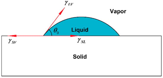 Schematic diagram of liquid contact angle.