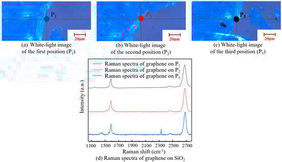 A white-light image of three different positions on the SiO2 substrate (a–c). Raman spectra of graphene at the three positions on the SiO2 substrate (d).