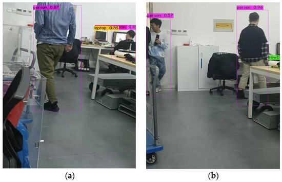 Figure 2. Object detection results of Yolov4-Tiny. (a) Results 1; (b) Results 2.