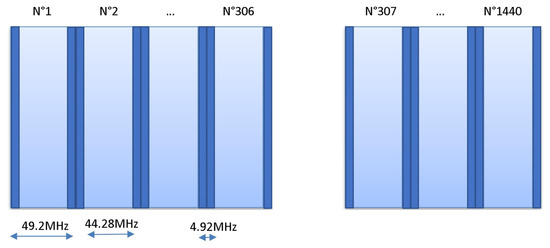 Structure of all sub-channels from 1 to 1440, considering 4.92 MHz inter-sub-channel gap.