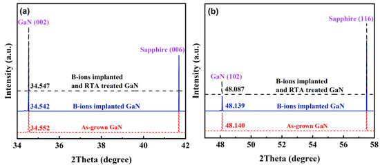 - Lorenz, K.; Ruske, F.; Vianden, R. Annealing Behaviour of GaN after Implantation with Hafnium and Indium. Phys. Status Solidi 2015, 228, 331–335. [Google Scholar] [CrossRef]