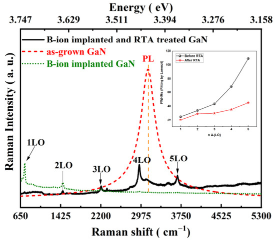 - Sun, W.H.; Chua, S.J.; Wang, L.S.; Zhang, X.H. Outgoing multiphonon resonant Raman scattering and luminescence in Be-and C-implanted GaN. J. Appl. Phys. 2002, 91, 4917–4921. [Google Scholar] [CrossRef]