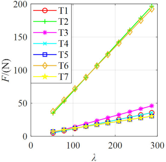 λ = 80, 170, and 260. The reason is due to the given force and the simulation deviation. It had little effect on the stiffness evaluation, which was ignored.