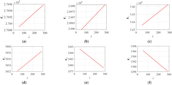 λ = 80, 170, and 260, the change of the overall stiffness eigenvalue conformed to the change of the stiffness shown in