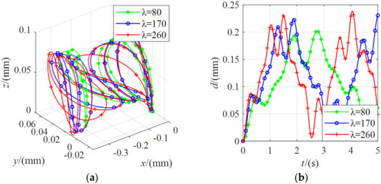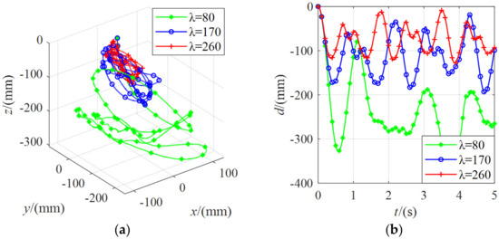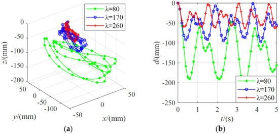 λ = 260, the distance from the initial pose of the moving platform was about 60 mm. The greater the value of