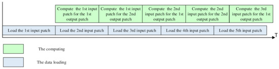 This scheme can be generalized to any kernel stride in the m × m mode. With a kernel stride larger than one, the size of the input patches will be (m × s + k – s)2. The input patches will still be divided into four groups, and each group will be stored in one PEB. Each PE will store an s × s tile of the input patch; s × s × I/4 input data will be stored in each PE, and each PEB will store (m × s)2 × I/4 input data in the Mmems. Then, the partial results can be produced and added to generate the complete output patch.