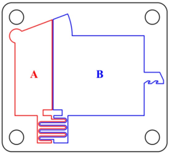 Figure 10 shows the processing scheme of the frame. The auxiliary support beam with a width of 0.04 mm divides the frame into two processing areas, A and B. Before processing, bolt holes are machined around the frame with an EDM prepiercing machine, and different machining allowances and parameters are selected to produce multiple cuts between A and B according to the cutting path planned in the scheme. This method can not only be used to improve the quality of the processing surface but also to redistribute the residual stress and correct the deflection deformation of the microspring. In this paper, a total of five cuttings were performed. After the first cutting, the surface quality of the frame was poor, and many adhesives were attached. This is because the first cutting is rough machining, the discharge energy is large, and the frame surface is seriously ablated. In addition, due to the size effect, the flushing pressure during cutting cannot be too large, the adhesive cannot be effectively removed, and the surface roughness Ra is 1.43 μm. Figure 11 is a schematic diagram of multiple cutting, the relationship of the size is: