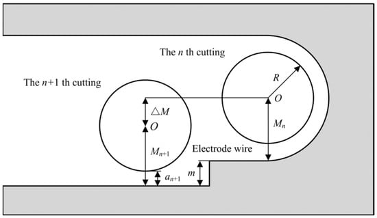 Mn is the offset of the electrode wire at the n th cutting; Mn+1 is the offset of the electrode wire at the n + 1 th cutting; ΔM is the offset increment after two adjacent cuts; m is the surface height difference after two adjacent cuts, which can be measured directly; R is the radius of electrode wire, brass wire with a diameter of 100 μm was selected; an+1 is the unilateral discharge gap at the n th cutting, and the unilateral discharge gap for the five cuttings are shown in Table 3. Since the offset of the electrode wire does not correspond to the given value of the machine tool, it is necessary to correct the offset of the electrode wire one by one during multiple cutting. To ensure the machining accuracy, the offset of the electrode wire in the last cutting should be the sum of the unilateral discharge gap and the electrode wire radius. For the limitation of discharge gap, machining allowance, and machining space, the corrected electrode wire offset is shown in Table 4. The final surface roughness Ra can reach 0.49 μm after five cuttings with the offset, which is reduced by 65.7% compared with the first cutting.