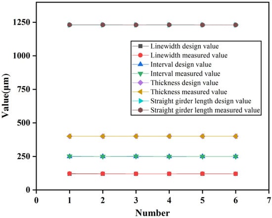 Figure 12 shows the sample comprising the microspring and frame after processing. This figure shows that the microspring has a small flexural deformation and good consistency. The microspring and setback slider were measured after processing with stereomicroscopy. The measurement results are shown in Figure 13. The measured values of the main parameters are similar to the design values, indicating that the EDM processing scheme proposed in this paper has high precision and can meet the processing requirements. The principle prototype obtained after assembly is shown in Figure 14.