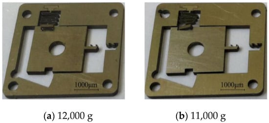 Figure 25 shows the improved principle prototype. Compared with the original structure, the bottom width of the frame is increased by 1.1 mm. 10 improved principle prototypes are taken as one group, and a total of 100 groups of mechanical impact tests and centrifugal overload tests are carried out under the same test conditions as those in Section 4 of this paper.